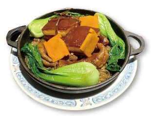 • 本幫東坡肉搭配鴨掌一同燉煮,膠質與醬香相互交融,風味更加醇厚,延伸成一道層次豐富的「鴨掌煨本幫東坡肉」。