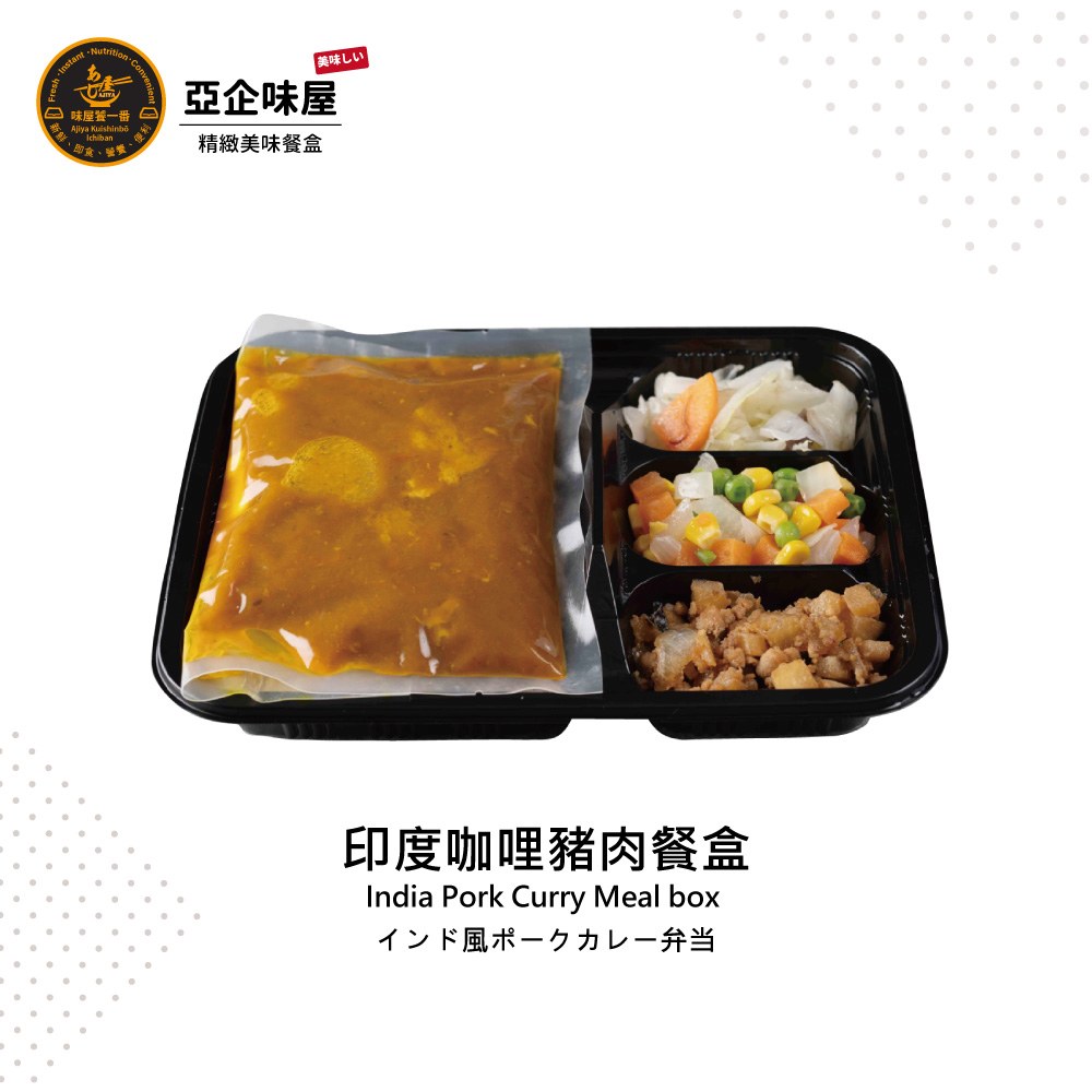 印度咖哩醬嚴選多種辛香料增添咖哩風味拌炒熬煮,呈現出微辛辣口感,香料氣味濃郁微辣開胃。搭配肥瘦均勻去皮豬五花肉,及豐富副菜組合,特殊風味,份量十足。